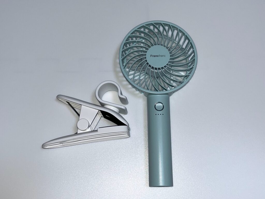 そして見つけ出したのが、フランフランのハンディファンとハンディファン用のクリップです!