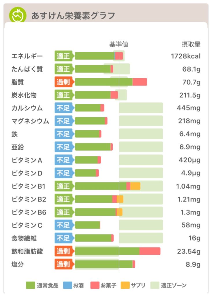 カロリーは気にしてなかったので、カロリーオーバーしていた日がほとんどでした。