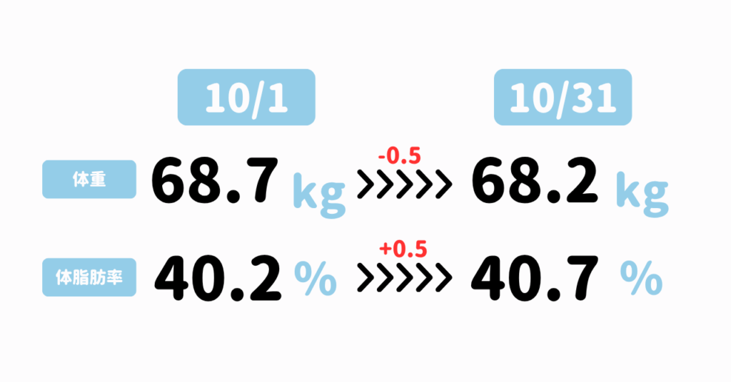 体脂肪率は増えてるし、体重の減りも誤差だよね
