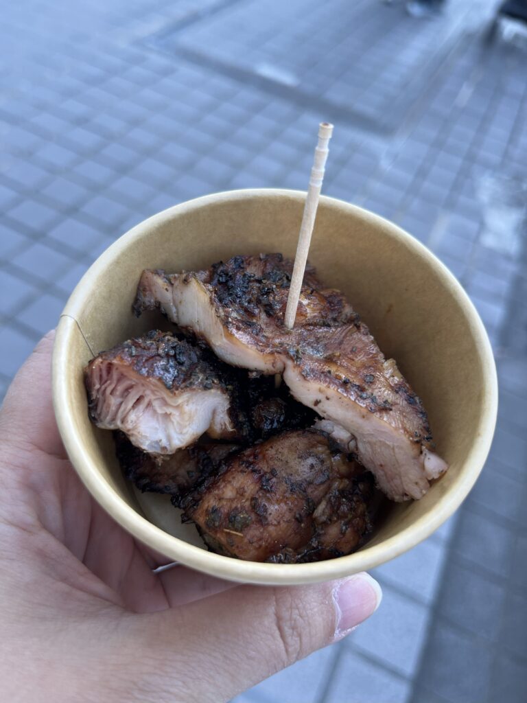 また行ったのがお昼時だったので、キッチンカーでジャークチキンと四川風麻辣たこ焼きを食べました!