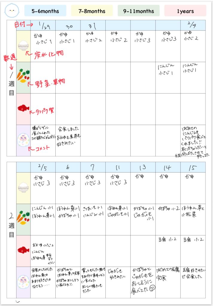 以上、離乳食の記録についてでした。