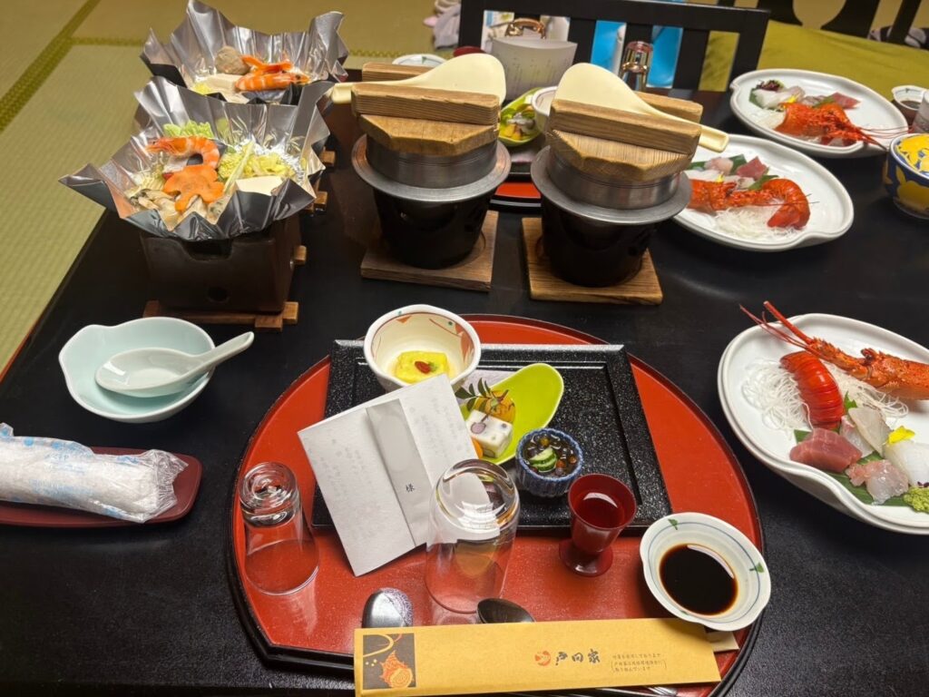 刺身には伊勢海老、寄せ鍋には牡蠣が入っていてめちゃくちゃ豪華でした。